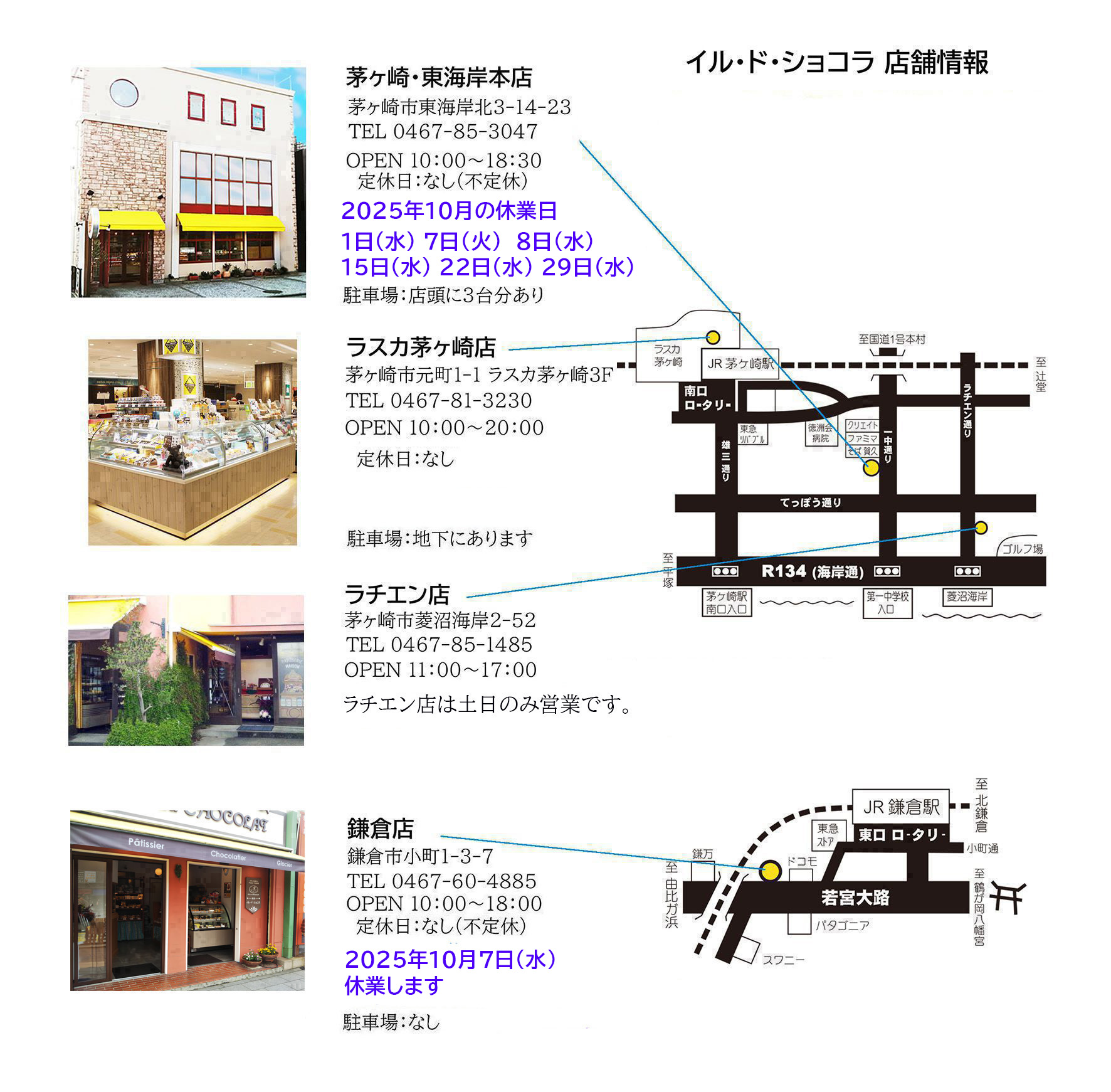 1990年創業。湘南で一番の老舗ショコラティエです。自社輸入した厳選クベルチュールを贅沢に使用して本当に美味しいショコラをはじめ、湘南らしく、かわいい貝やおさかな型の焼菓子など、日本中どこにもない当店だけのクリエーティブなお菓子を創作しています。最高の原材料を用いてフランスMOF直伝の製法により、常に味の本質を追求しています。素材の風味を損なわぬよう着色料や合成化学香料は一切使用せず、自然派の上品な色と味わいを大切にしています。