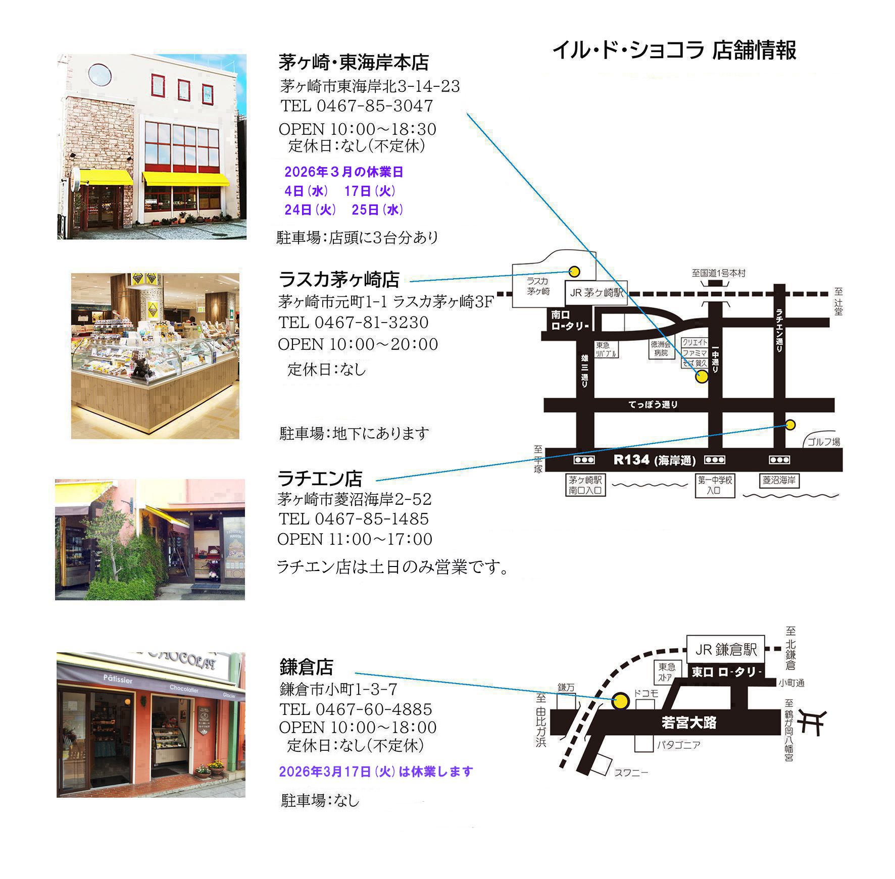 1990年創業。湘南で一番の老舗ショコラティエです。自社輸入した厳選クベルチュールを贅沢に使用して本当に美味しいショコラをはじめ、湘南らしく、かわいい貝やおさかな型の焼菓子など、日本中どこにもない当店だけのクリエーティブなお菓子を創作しています。最高の原材料を用いてフランスMOF直伝の製法により、常に味の本質を追求しています。素材の風味を損なわぬよう着色料や合成化学香料は一切使用せず、自然派の上品な色と味わいを大切にしています。